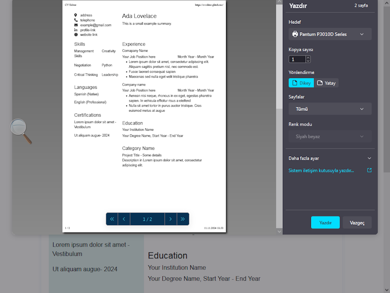 CV Editor Aracı ile: