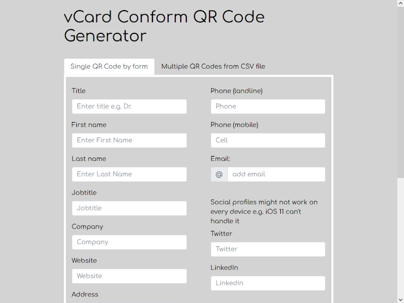 Bu araç, kişisel veya kurumsal iletişim bilgilerinizi hızlıca paylaşmanızı sağlayan bir vCard QR kod oluşturucudur. Web sitesinde doldurduğunuz bilgilerle anında bir QR kodu oluşturur. Bu QR kodu telefon kamerasıyla okutulduğunda, bilgiler otomatik olarak kişinin telefon rehberine kaydedilir.